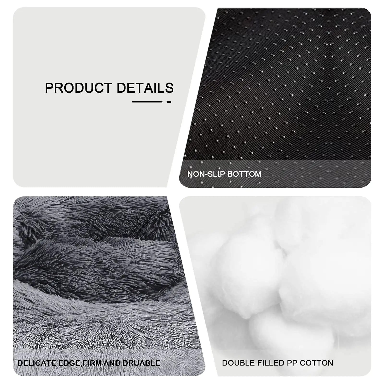 - Calming, donut design with thick PP cotton padding delivers warmth, comfort, and reduced anxiety for stressed pets.