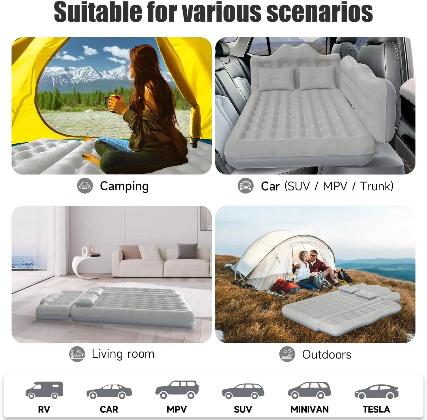Unlike standard travel mattresses, our inflatable design fits seamlessly into the backseat of your vehicle, transforming it into a comfortable sleeping area. The Inflatable Car Backseat Air Mattress is perfect for families, adventurers, or anyone looking to maximize comfort while on the road. Its easy-to-inflate design allows for quick setup, making it an essential travel companion.