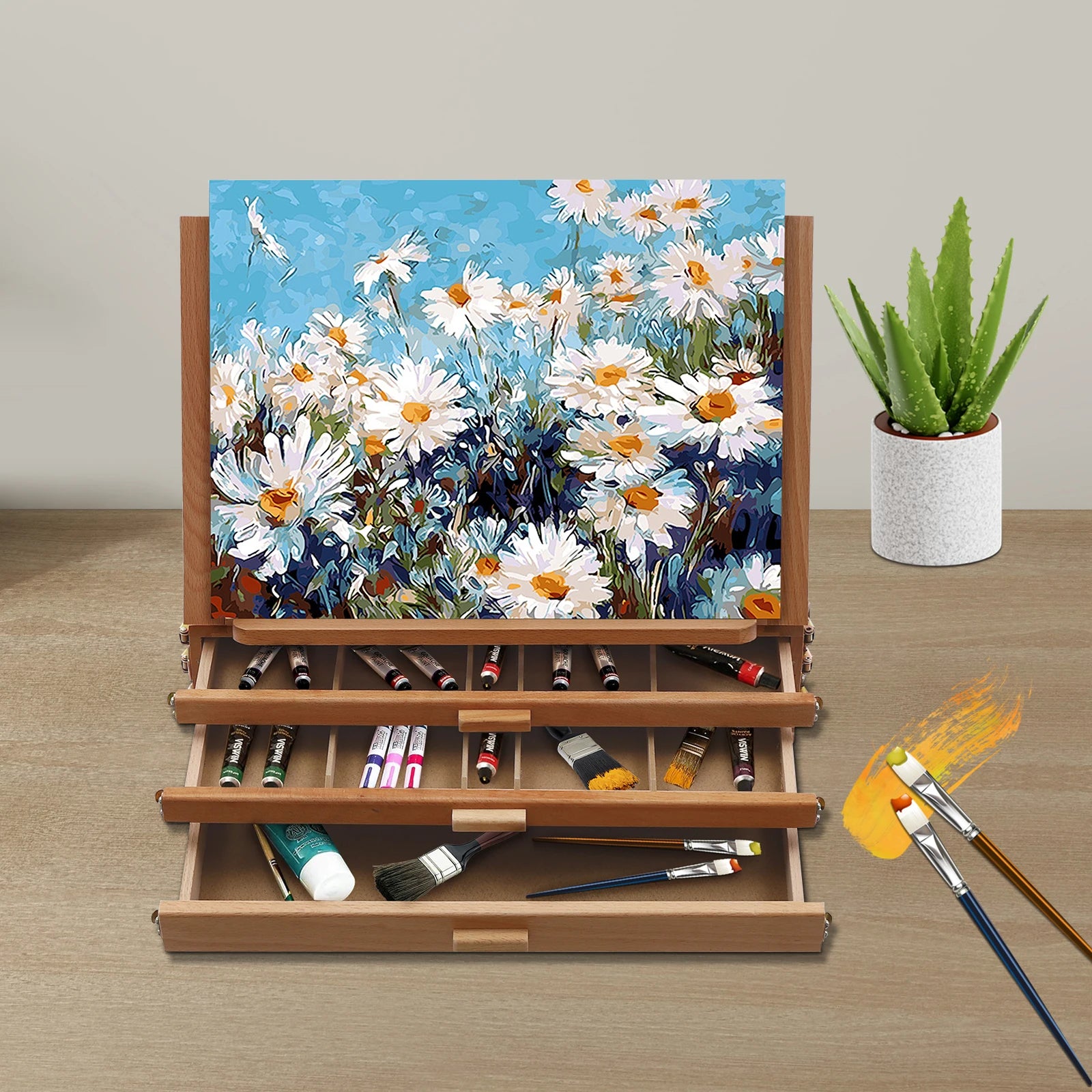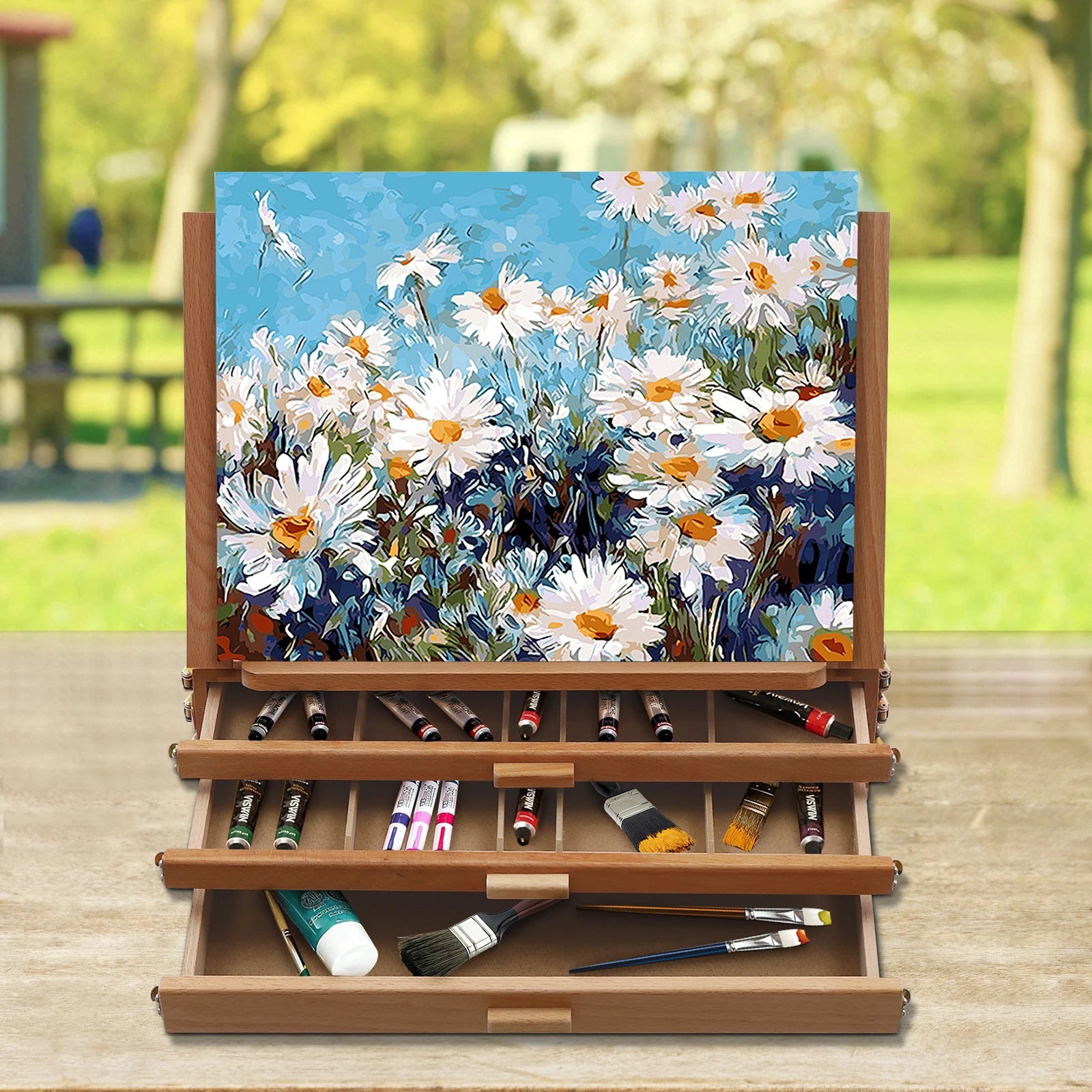 From Hign-concerned, this multi-function storage box easel blends sturdy beech wood construction with practical art storage to elevate your painting session.