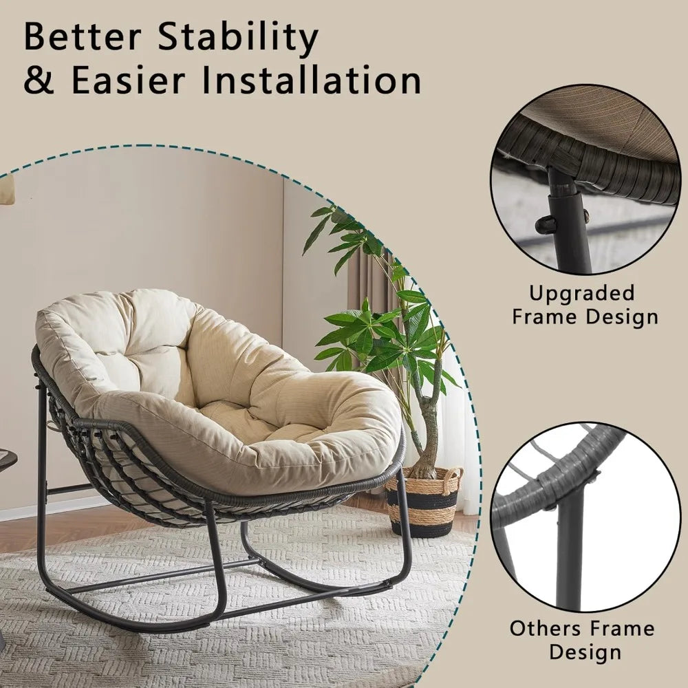Chill in effortless style with the Outdoor Papasan Chair Rocking Patio Egg Chair—your go-to lounge for sunny days, breezy evenings, and cozy conversations.